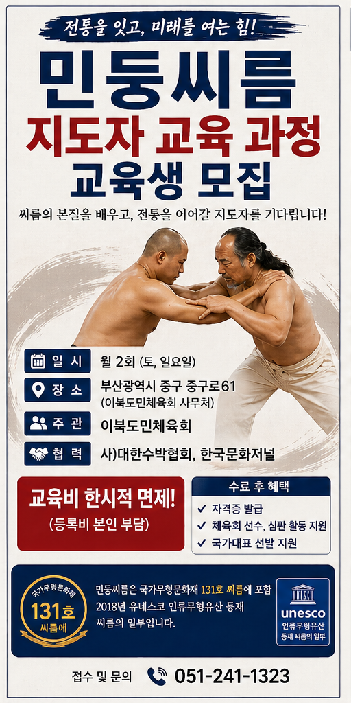 (김민정 기자)= 전통 씨름의 한 형태로 주목받고 있는 민둥씨름이 지도자 양성 단계에 돌입했다.