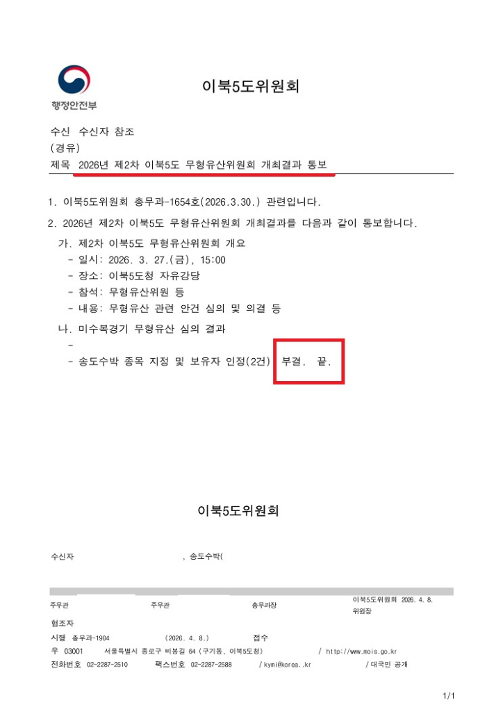 (편집부)= 이북오도위원회 무형유산위원회 심의와 관련해