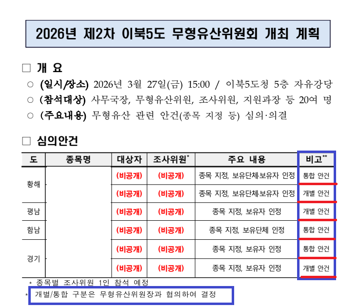 (편집부)= 3월 27일 개최된 2026년 제2차 이북오도 무형유산회의에서