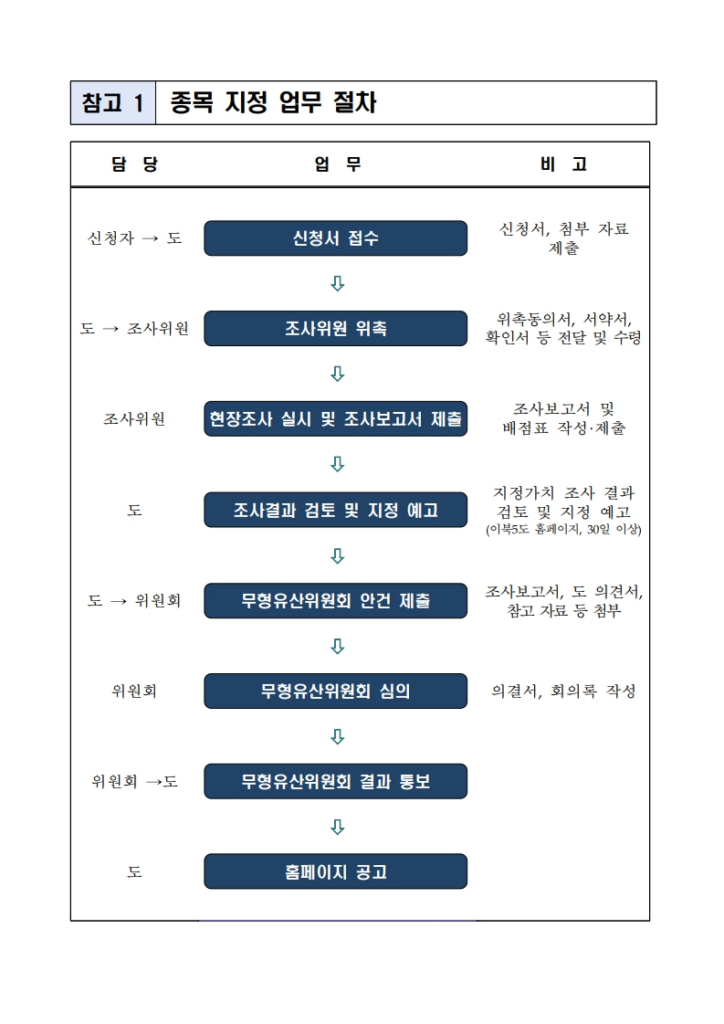 무형유산 심의는 모든 안건을 개별적으로 동일 기준에서 검토하는 구조로 운영된다.
