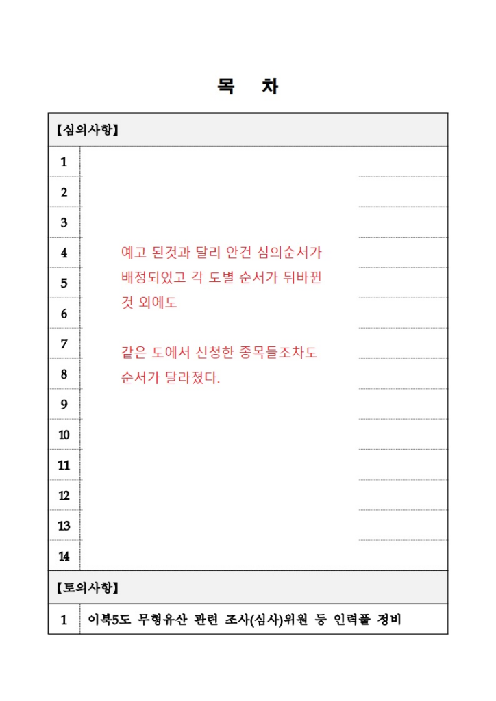 이북오도무형유산 심의에서 안건 구분이 별도로 이루어진 경우,
