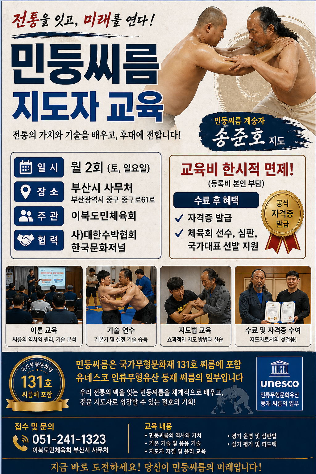 (김민정 기자)= 전통 씨름의 한 형태로 주목받고 있는 민둥씨름이 지도자 양성 단계에 돌입했다.